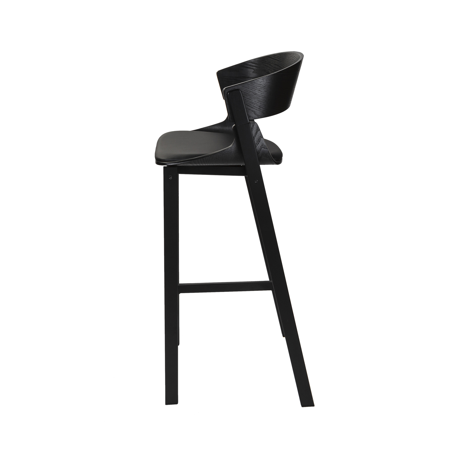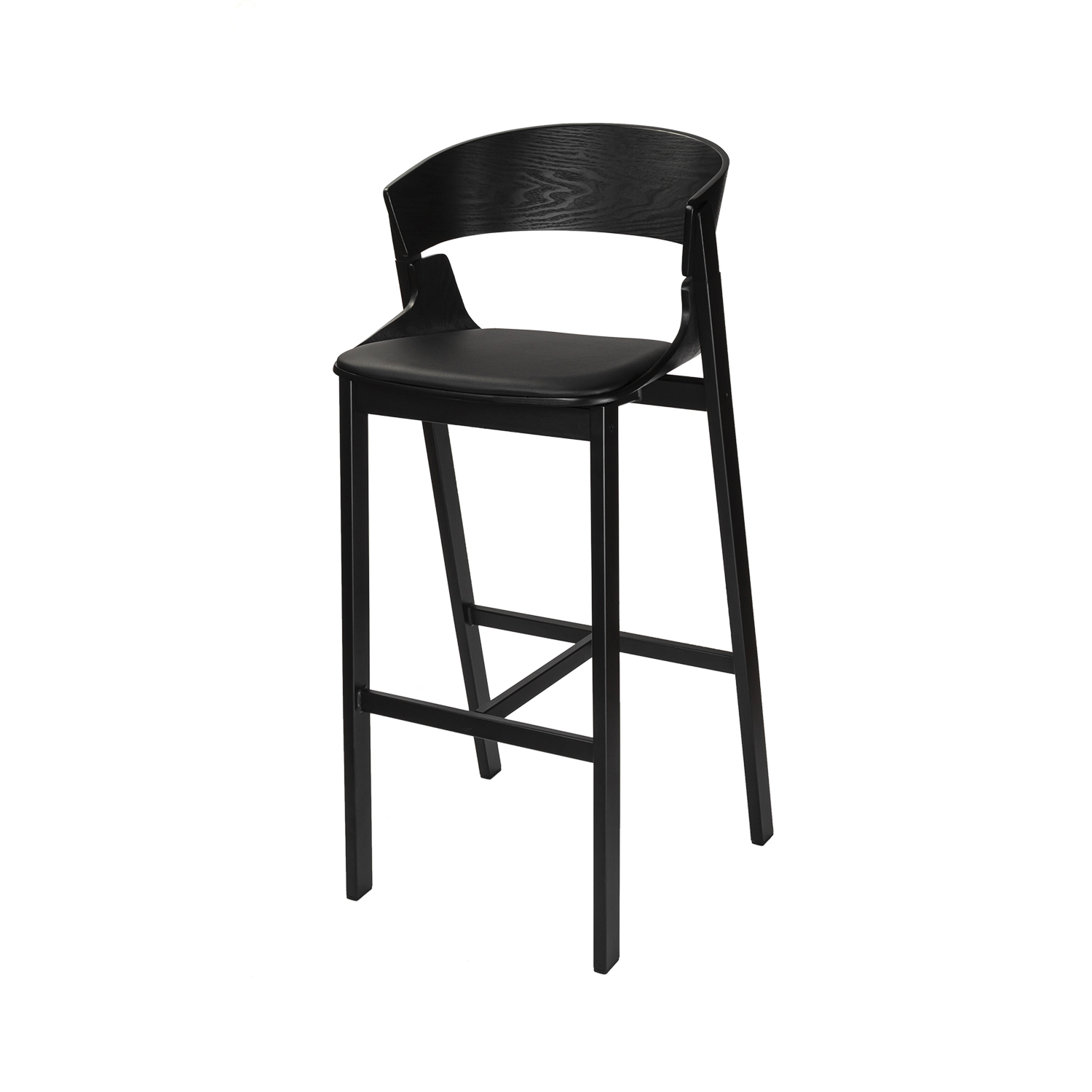 Стул барный JY1076 черная эко-кожа, шпон орех, черный металл