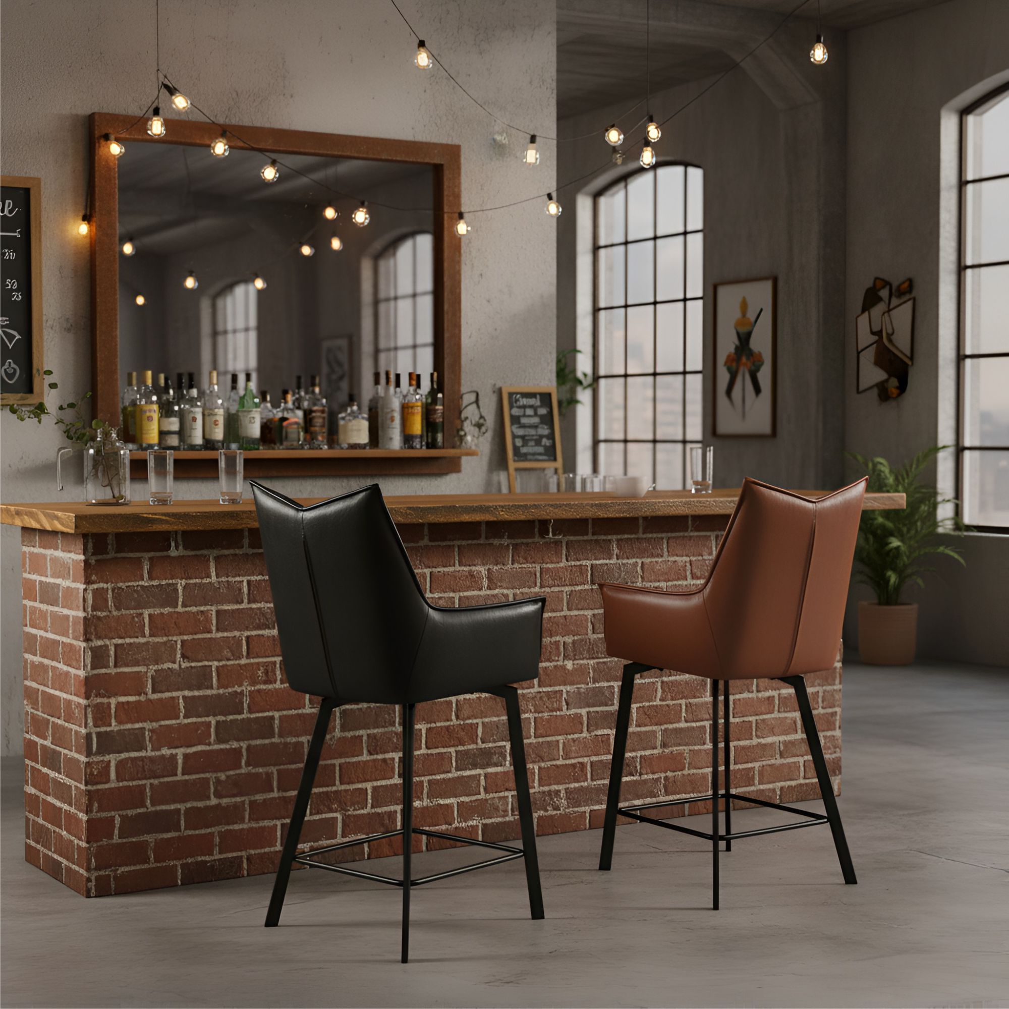 Стул барный CQ-8347B коричневая эко-кожа, черный металл
