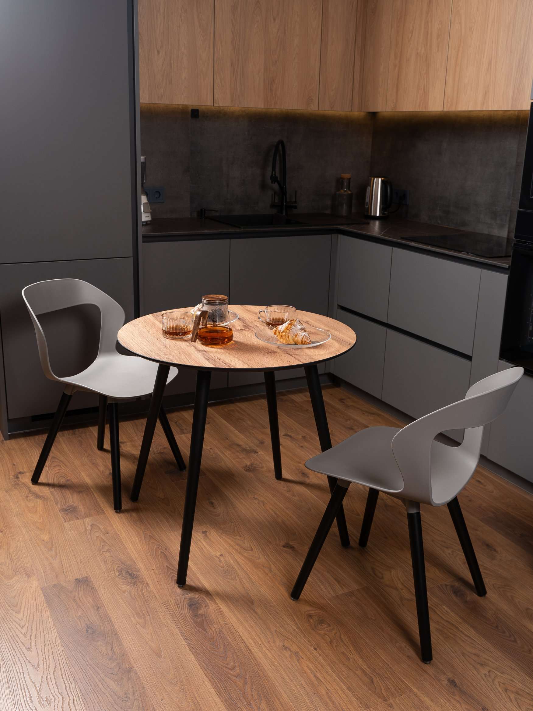 Стул Кан деревянный, Дуб антрацит, нептун грей