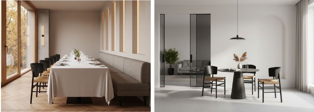 Для ресторанного интерьера это особенно ценно. Хорошая мебель в таком пространстве должна работать сразу на нескольких уровнях: поддерживать концепцию, выдерживать визуальную нагрузку, быть удобной в посадке и при этом не утомлять глаз. БРЭ справляется с этой задачей тонко. Он может стать частью интерьера с тёплой минималистичной эстетикой, органично войти в современное пространство с натуральной палитрой или поддержать более расслабленный, курортный по настроению сценарий - например, на летней веранде.