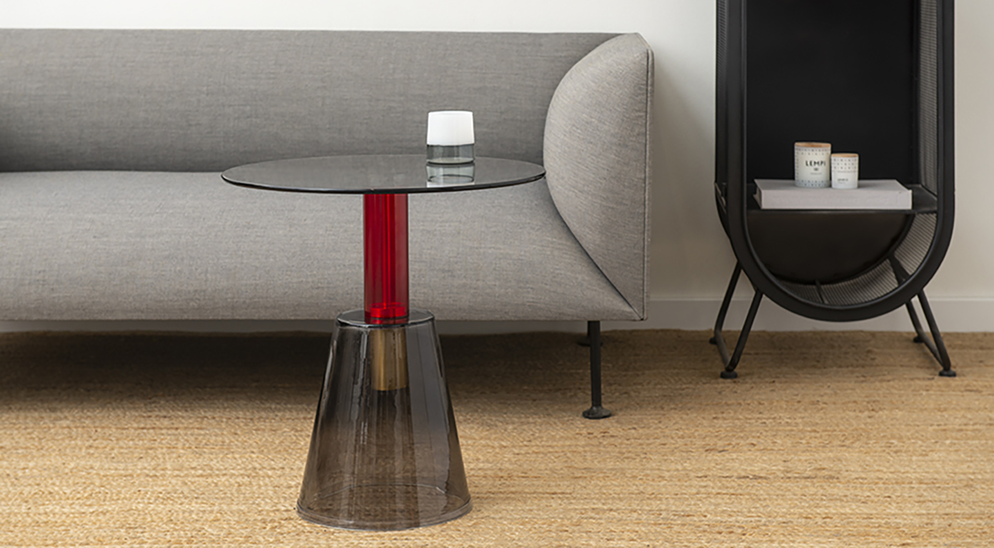 Кофейный столик Amalie привлекает внимание необычным дизайном – все элементы конструкции выполнены из стекла. Столешница и основание имеют серый оттенок. Ярким акцентом выступает ножка красного цвета. Такой предмет мебели органично вписывается в различные интерьерные стили: минимализм, фьюжн, поп-арт, хай-тек и др. Материал: стекло. Максимальная нагрузка - 15 кг. Диаметр: 50 см. Высота: 52 см. Цвет: серый/красный. Пыль и загрязнения с поверхностей можно удалять мягкой влажной тряпкой или салфеткой. Рекомендуется использовать средства для очистки стекол. Не применять абразивные материалы и агрессивную бытовую химию.